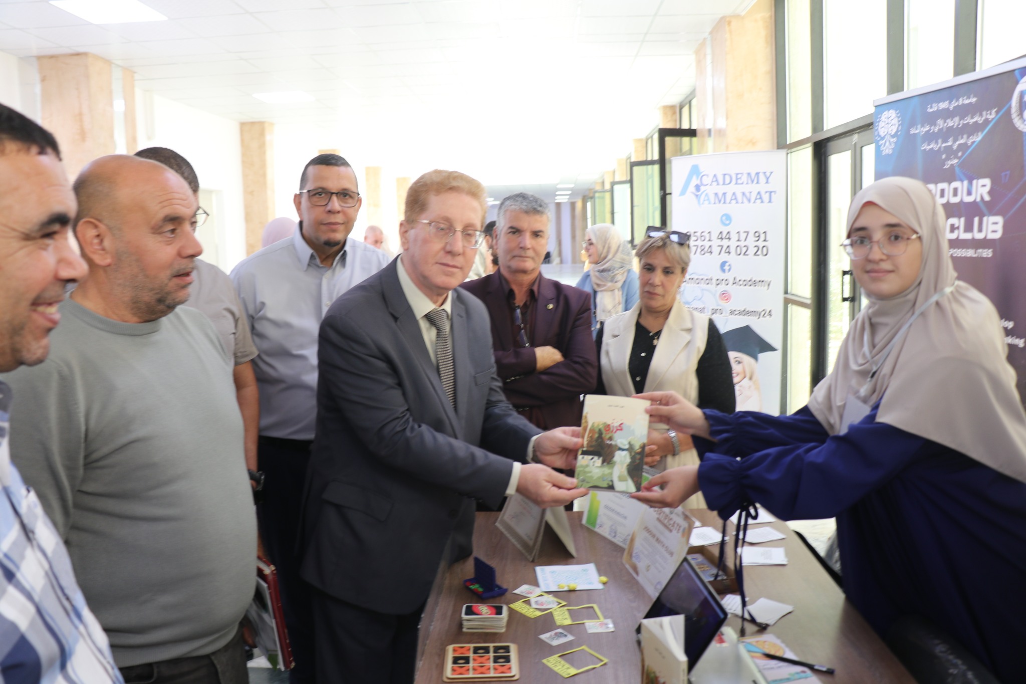 استهل البرنامج بجولة في معرض للنوادي العلمية الجامعية حيث قام السيد مدير الجامعة رفقة الطاقم المرافق له بالاطلاع عن كثب على مختلف الأنشطة التي تقوم بها نوادي الجامعة.