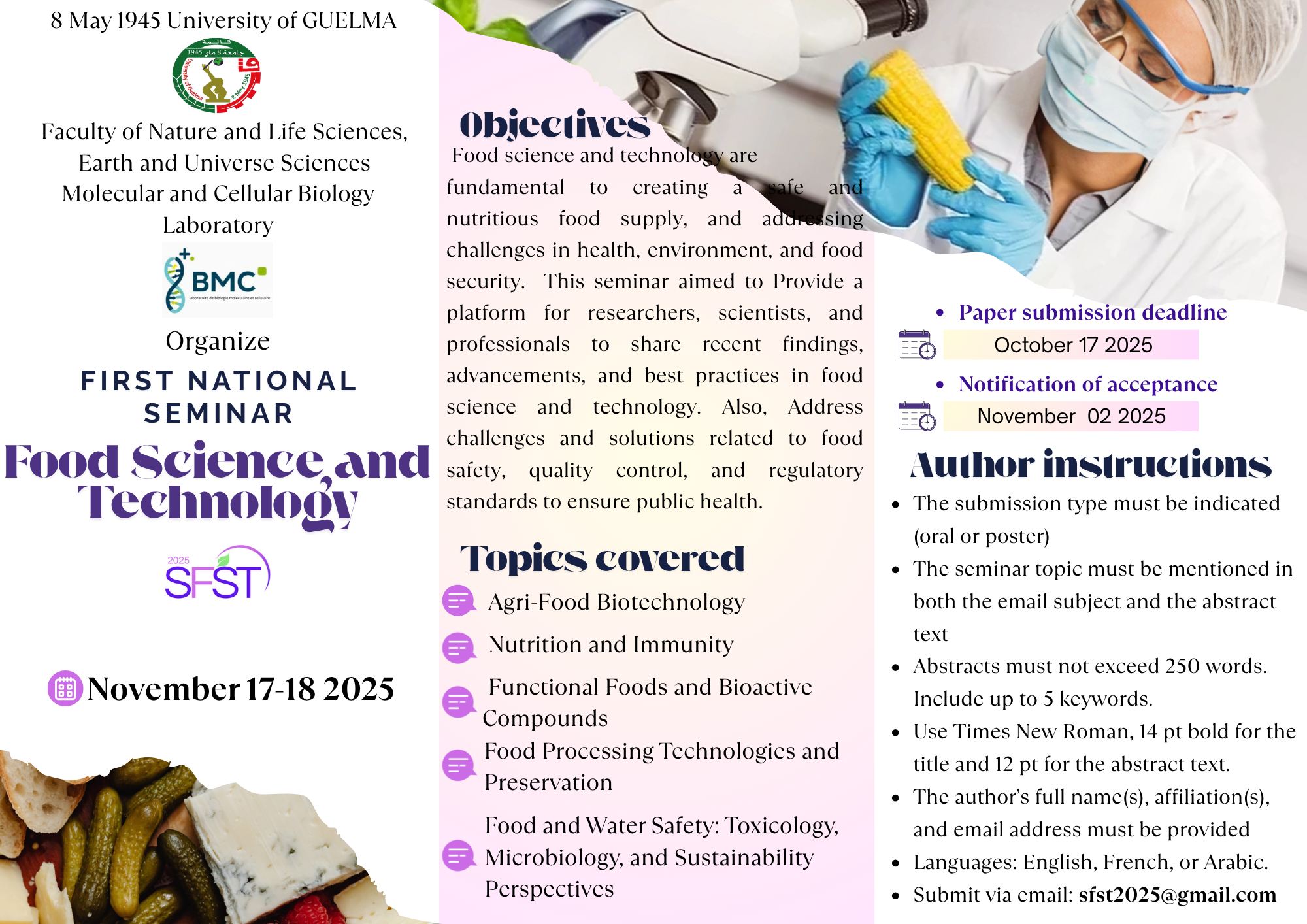 الندوة الوطنية الأولى حول: علوم وتكنولوجيا الأغذية