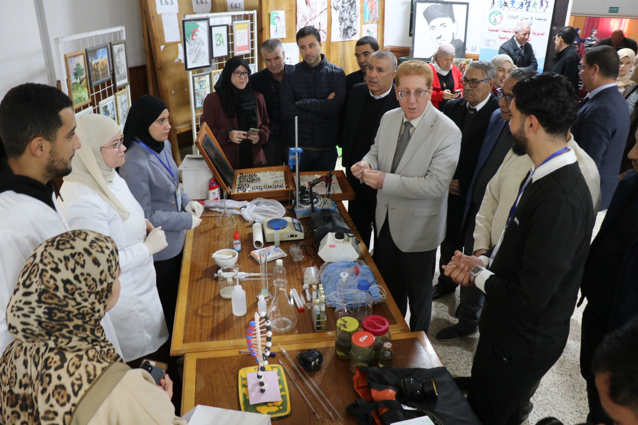 ستُهلّت الفعالية بزيارة معرض للنوادي الجامعية، عرضت فيه أعمال وإبداعات الطلبة، حيث قدّموا أعمالاً فنية وملصقات تاريخية تجسّد رمزية المناسبة وروح المقاومة التي طبعت تلك المرحلة.