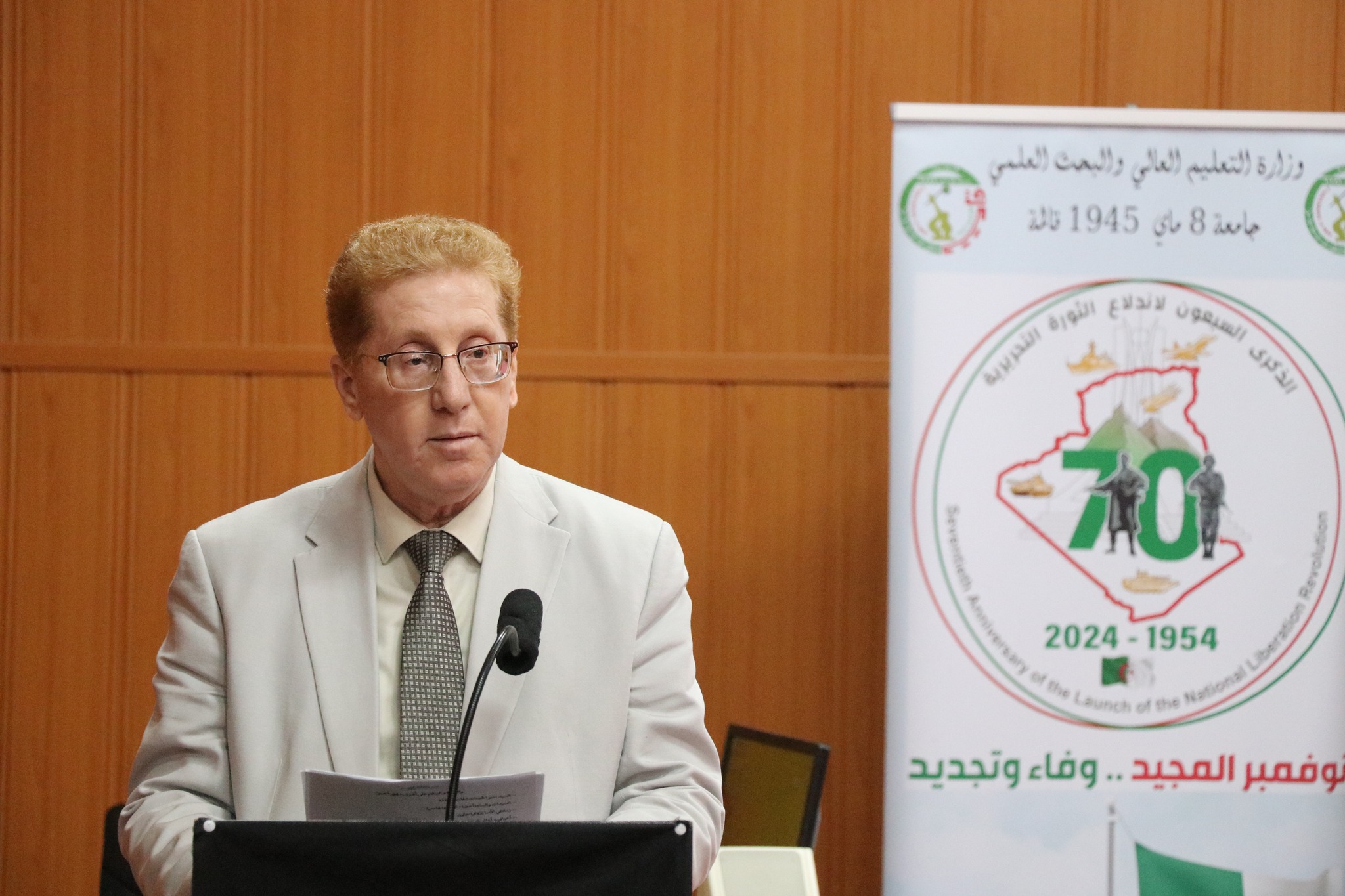 وفي کلمته الافتتاحیة, هنأ السید مدیر الجامعة البروفيسور محمود دبابش كافة الأسرة الجامعیة بھذه المناسبة الوطنیة التي شکلت محطة حاسمة في مسار الثورة ومفخرة لصناع الاستقلال, داعیا الطلبة إلی ضرورة التسلح بالعلم والاقتداء بالأسلاف لاستکمال رسالتهم في خدمة الوطن, مٶكدا التزام الجامعة بإحیاء هاته الذکری لتوثيق تاریخ الأمة.